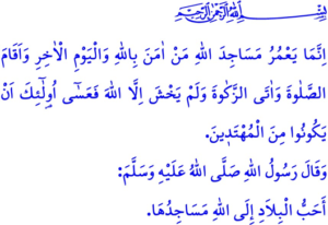 Zoti ynë i Madhëruar në Kuranin Fisnik urdhëron: “Faltoret e Allahut i vizitojnë dhe i mirëmbajnë vetëm ata që besojnë Allahun dhe Ditën e Fundit, që falin namazin dhe japin zekatin e që nuk i frikësohen askujt, përveç Allahut. Sigurisht që këta janë në rrugë të drejtë”.[2] Të ndërtosh xhamitë nuk do të thotë vetëm t’i ngresh ato fizikisht. Por t’i ndërtosh dhe t’i gjallërosh xhamitë do të thotë të jesh i pranishëm në të njëjtin rresht (saf), krah për krah me besimtarët, për të arritur qetësinë para Zotit. Do të thotë të arrish vetëdijen e unitetit, vëllazërisë dhe bashkimit nën kupolat e xhamive dhe nën hijen e minareve të tyre.
